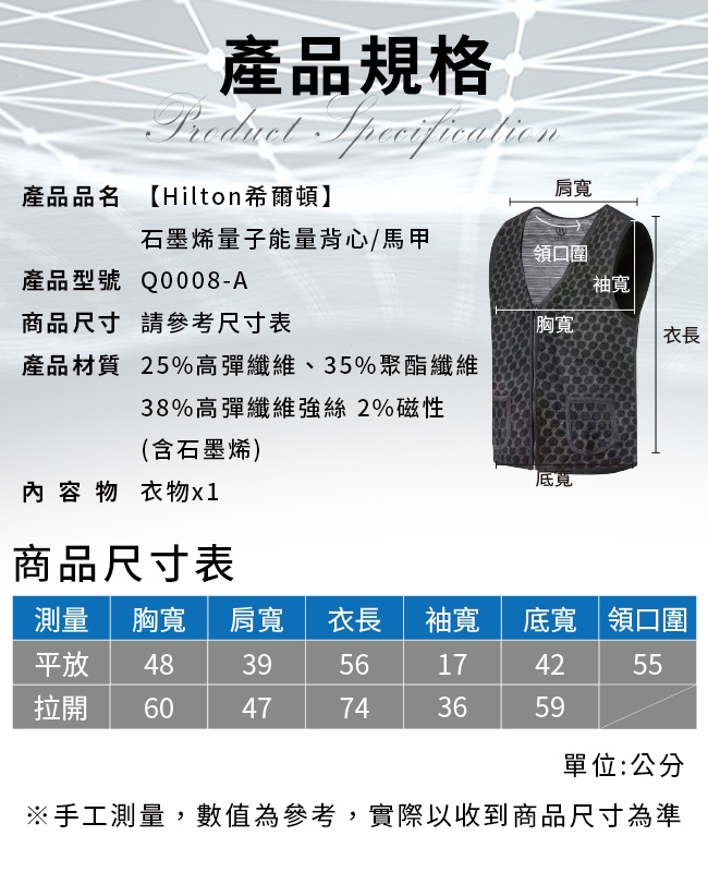 產品品名:【Hilton 希爾頓】石墨烯量子能量背心/馬甲